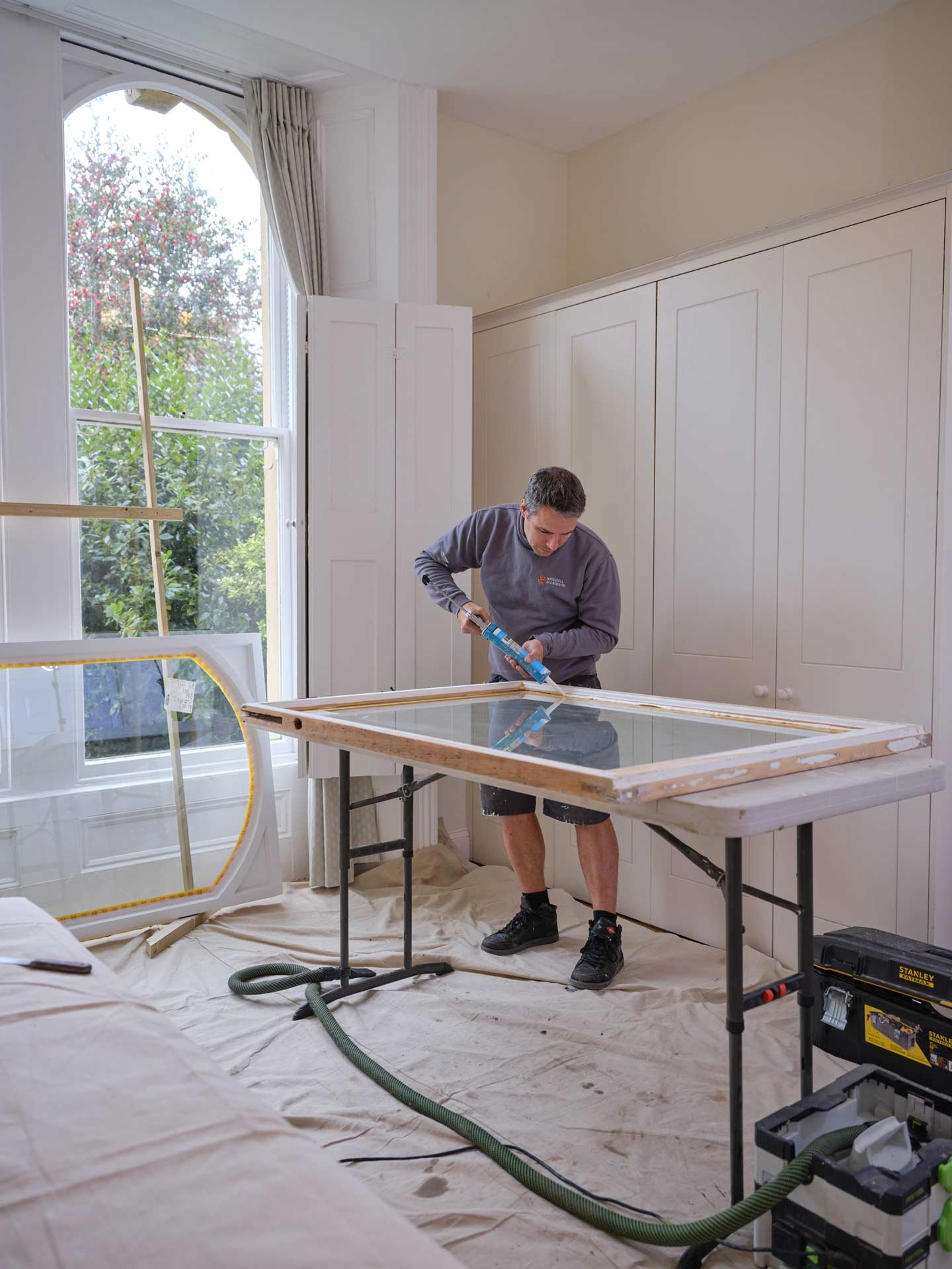 This gallery offers a behind-the-scenes look at our skilled craftspeople restoring period and listed property windows and doors with care and precision. From carefully stripping back original frames and fittings to full restoration and reweighting of sash windows, our team ensures that every detail is brought back to life.